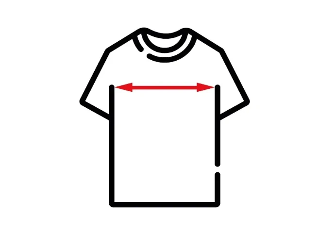 To take accurate measurements, lay the garment flat and measure the distance between the armpits as indicated by the arrow.