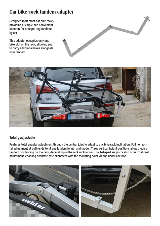 Transport configuration: the tandem occupies only one bike rack slot, allowing additional bicycles to be transported simultaneously